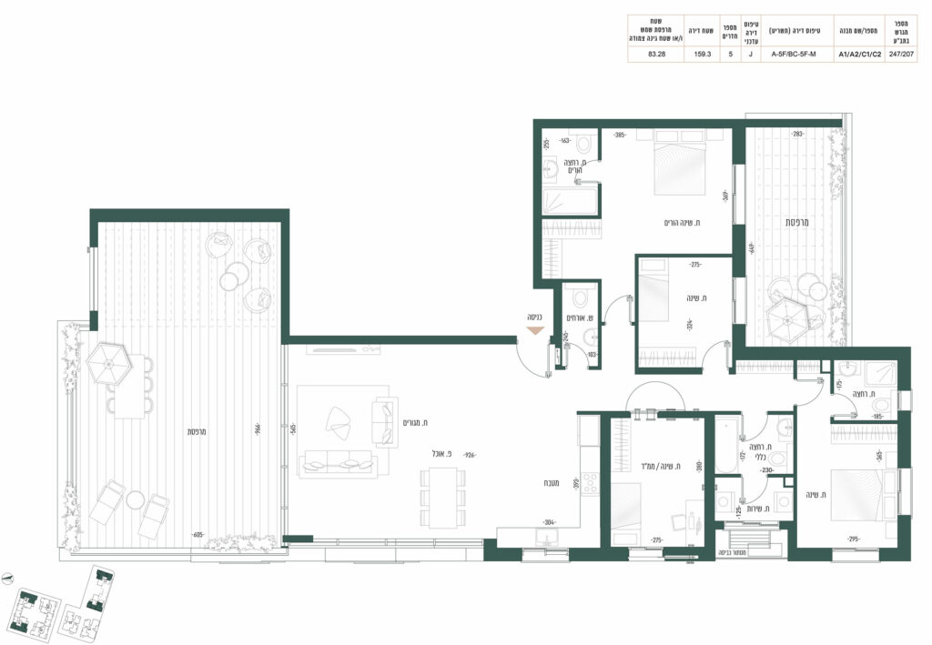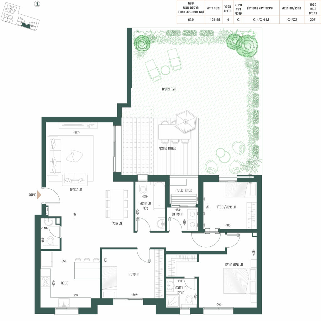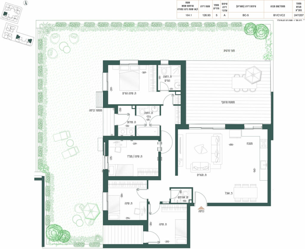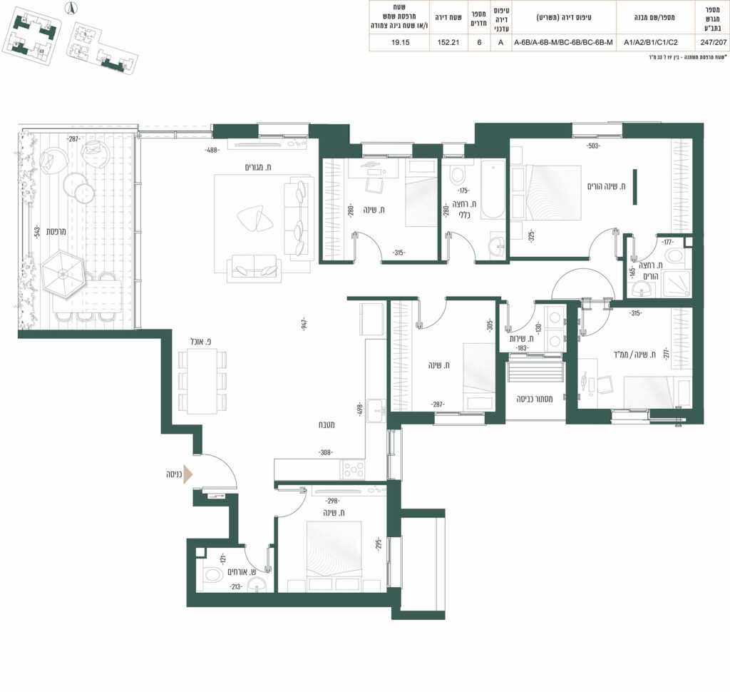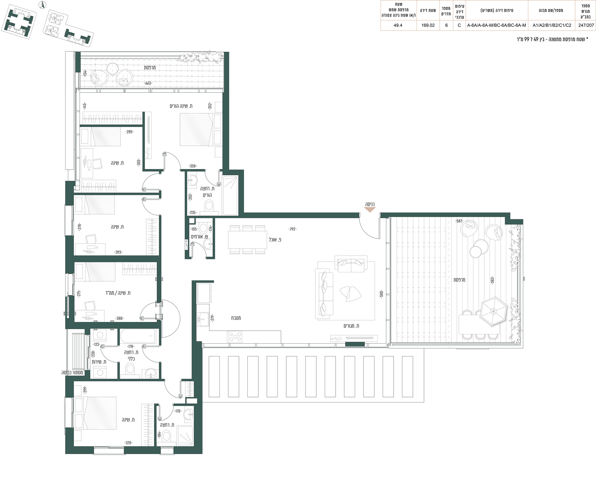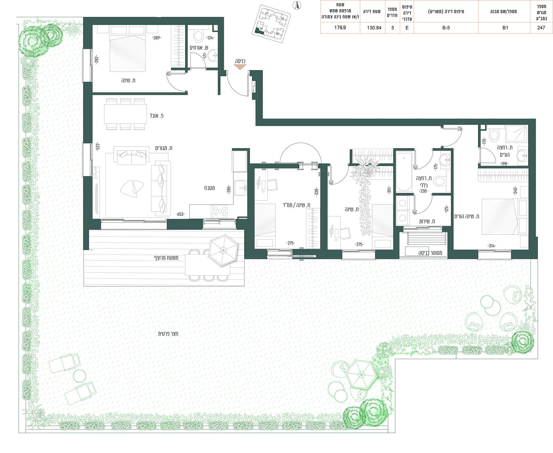 תמהיל הפרויקט כולל דירות 3,4,5 ו- 6 חדרים, וכן דירות גן , מיני פנטהאוזים ופנטהאוזים מפוארים.