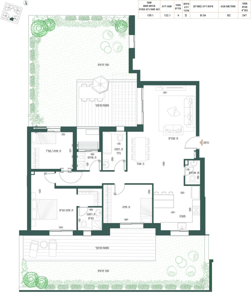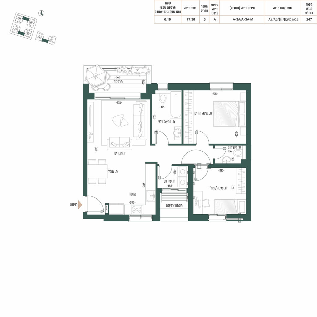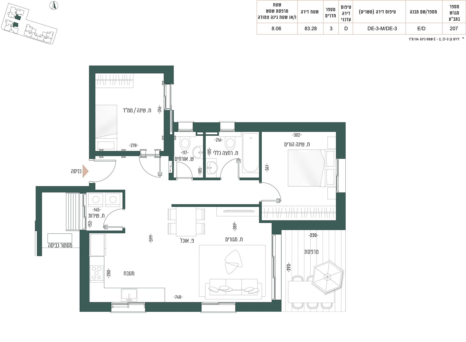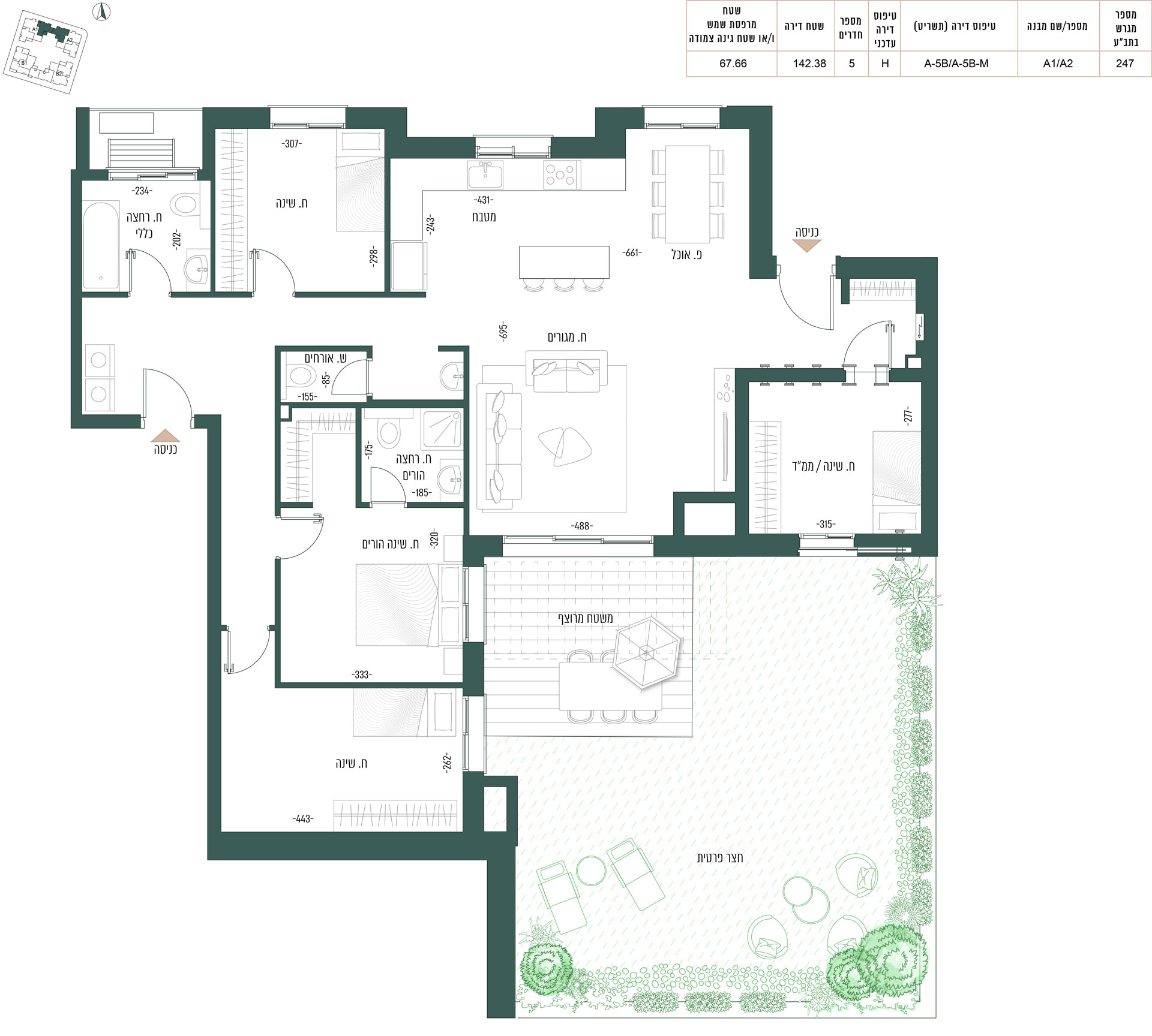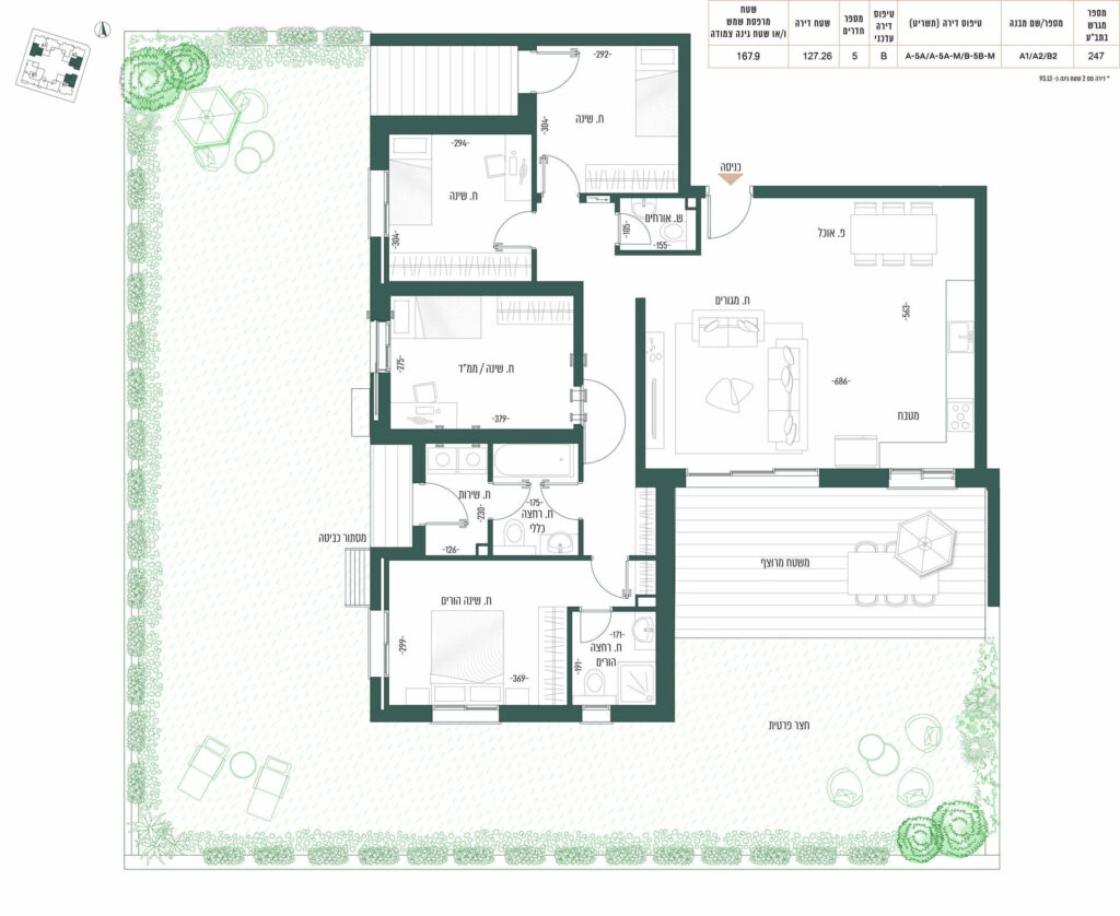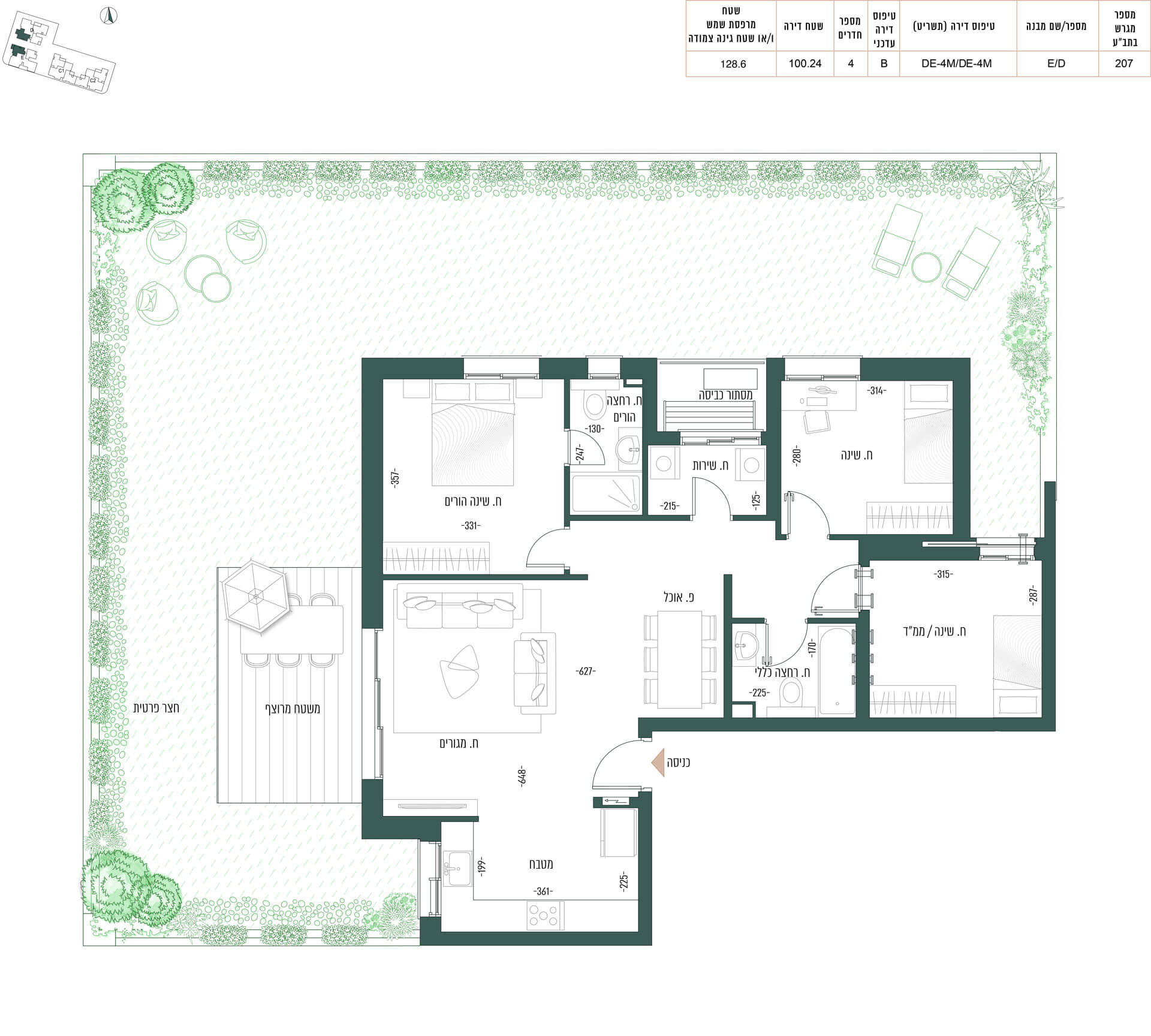תמהיל הפרויקט כולל דירות 3,4,5 ו- 6 חדרים, וכן דירות גן , מיני פנטהאוזים ופנטהאוזים מפוארים.