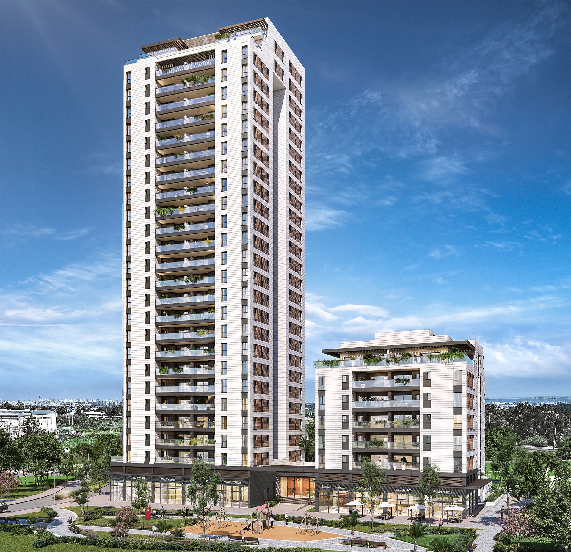 לבחירתכם תמהיל דירות מגוון, הכולל דירות 3, 4 ו-5 חדרים ופנטהאוזים, בסטנדרט בנייה יוקרתי וייחודי, ובמפרט מתקדם הכולל עיצוב מוקפד, טכנולוגיות חדשניות ואת הפתרונות המשובחים ביותר בכל חללי הדירה.