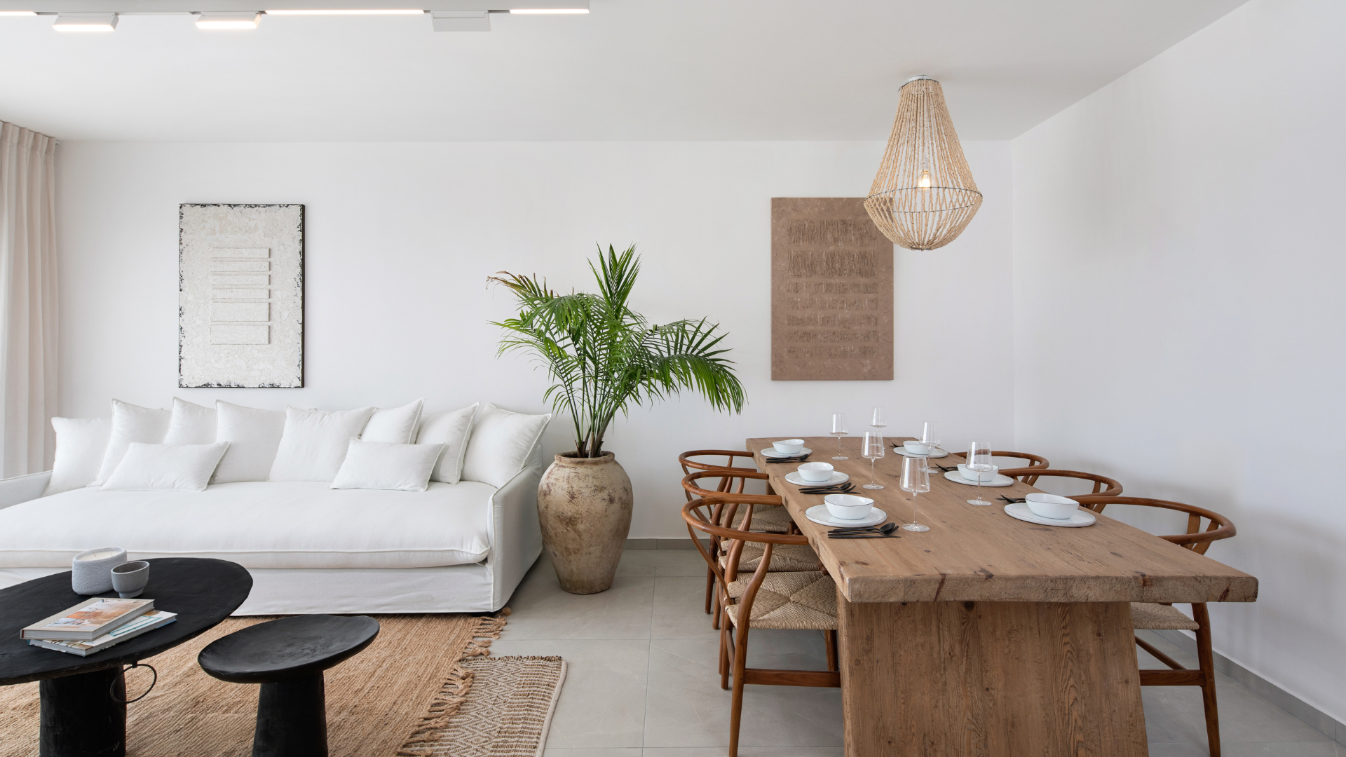 חלל מגורים מודרני המותאם לצורכי המשפחה, עם גוונים חמימים ושימוש בטקסטורות טבעיות היוצרות תחושת ביתיות. הדירה מעוצבת במטרה לשלב בין אסתטיקה לפרקטיות, תוך יצירת סביבת מגורים נעימה ומרגיעה.