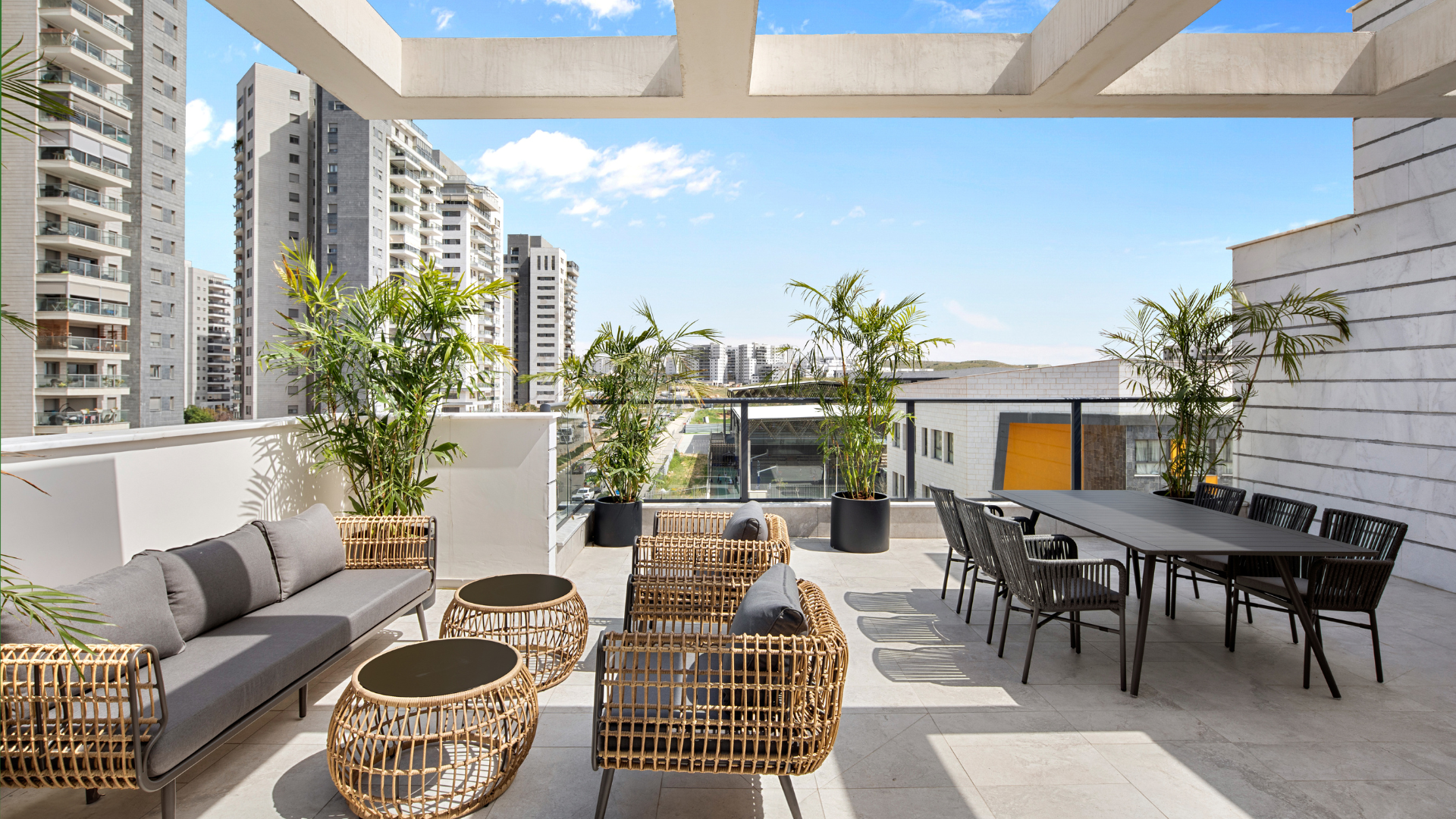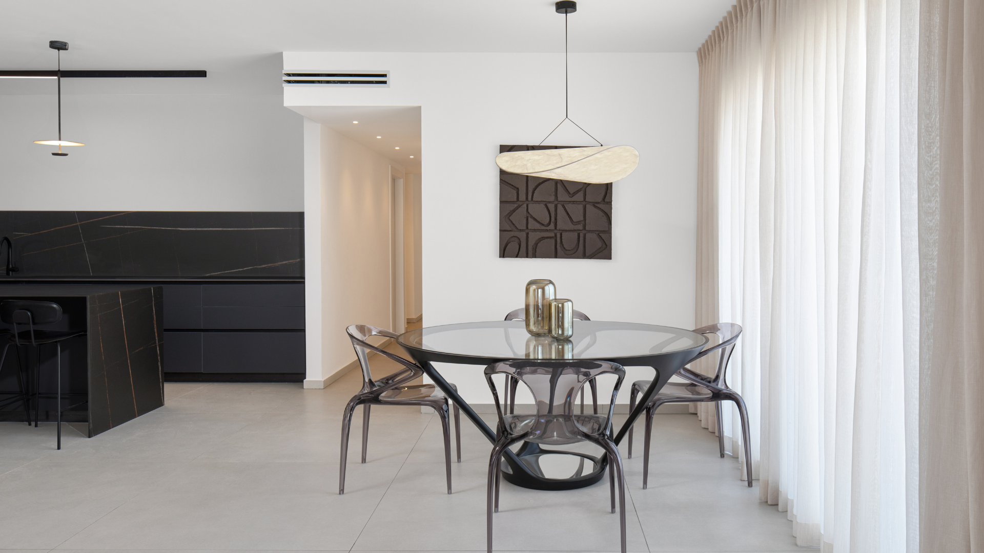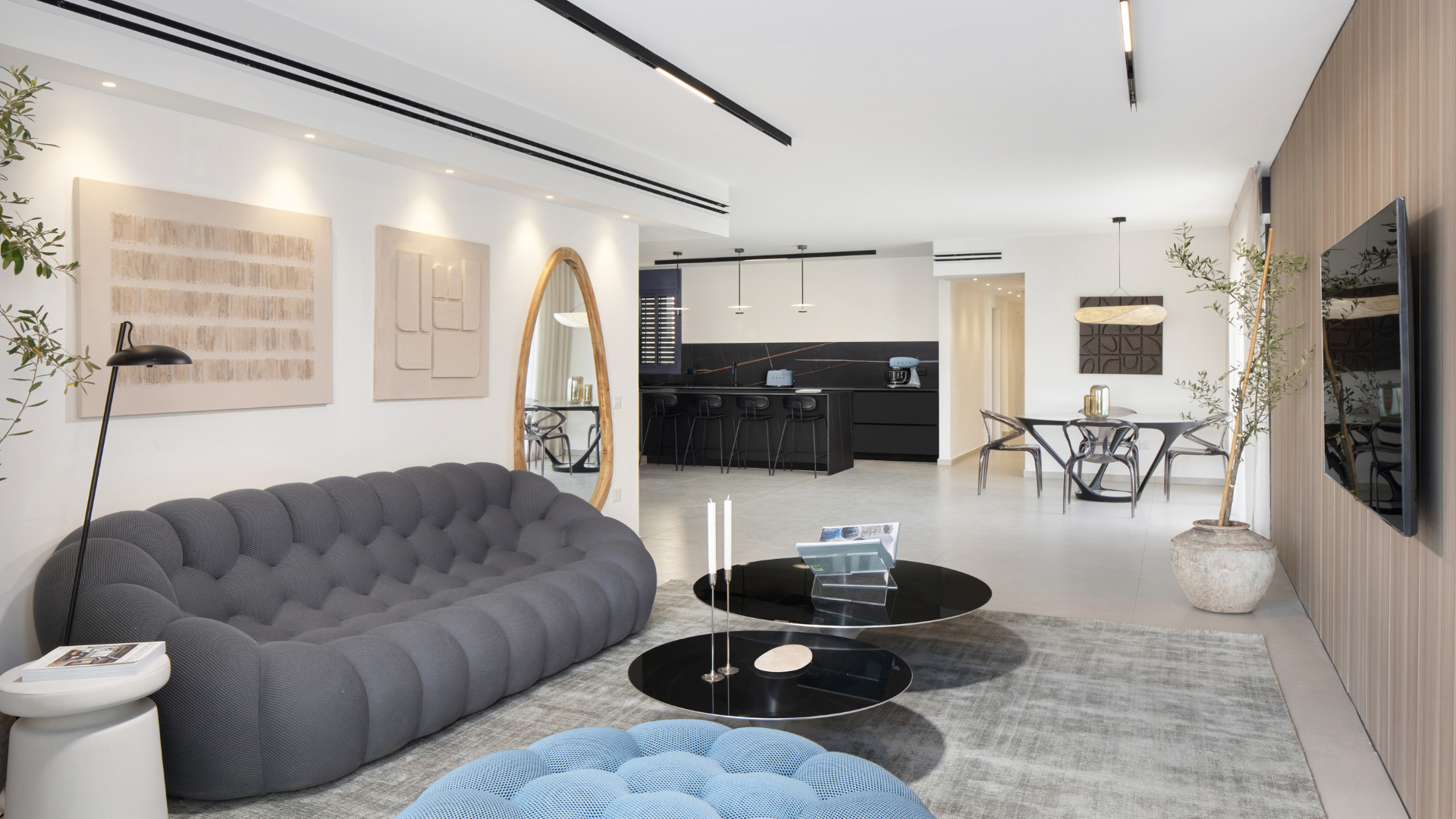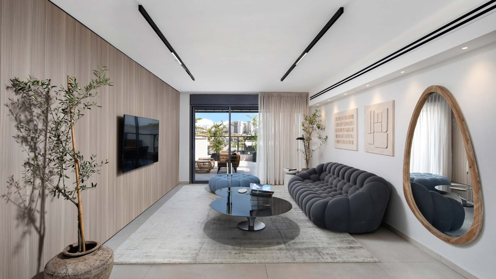 עיצוב ייחודי שמשלב אלמנטים מודרניים עם חומרים חמים, תוך שימת דגש על יצירת תחושת מרחב ואור. חללים מוארים, ריהוט מינימליסטי וחיבור טבעי בין פנים לחוץ הופכים את הדירה למקום מזמין ורגוע.